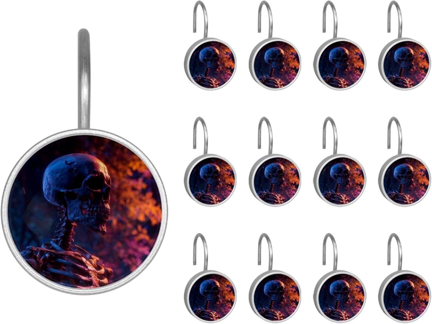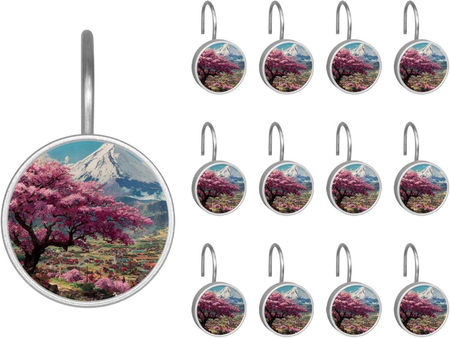 MATERIAL: glass, stainless steel. These shower curtain hooks can be decoration bathroom and will be long-lasting.12 pieces of shower curtain hooks, round crystal glass decoration, printed patterns, silver hooks to match various styles of bathroom shower curtains. SIZE: Crystal glass diameter of round shower curtain hook is 1.45x1.45in/ 3.7x3.7cm. The shower curtain hooks diameter is about 1.1in, 12 pieces shower curtain hooks are suitable for rod of 8-28mm(0.3"-1.1"). RUST RESISTANT:Shower hooks are made of stainless steel and crystal glass, which is durable, rust-proof and corrosion-resistant, it will not rust suitable for wet bathroom environment. EASY TO INSTALL:Hand the shower curtain hooks hold securely on straight or curved shower curtain rods,slid easily and smoothly. Easy to install and decorate your bathroom. BEAUTIFUL AND ELEGANT:Beautiful Love hook add charming scenery for your bathroom, baby room, bedroom, living room, and the gorgeous style is easy to match with any kinds of bathroom shower curtain. EASY GLIDE: Open and close your shower curtain quickly and easily with the Shower Hooks, easily glides on shower curtain rods and tension rods. No snagging; no effort; no hassle PACKAGE: 12 shower curtain hooks in a pack.The bathroom curtain hook has a smooth appearance and can be hung on the pole to pull it at will. Special price 12 sets to meet your needs.