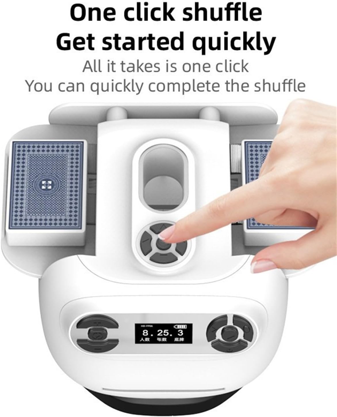 This Automatic Card Dealer Machine simplifies the card dealing process, allowing you on the joy of playing. Compared to traditional manual dealing, it not only saves you time and effort but also reduces the risk of cheating and ensures fair gameplay. Specifications - Name: Automatic card dealer - Color: black,White - Material: ABS/POM - Battery: 2600mAh/7.4V - Display: 1.3-inch OLED - Interface:Type-C - Weight: 913g - Size:17.2*14.2*11.5(CM) Package include 1* Card Dealing Machine 4* Card dealing button