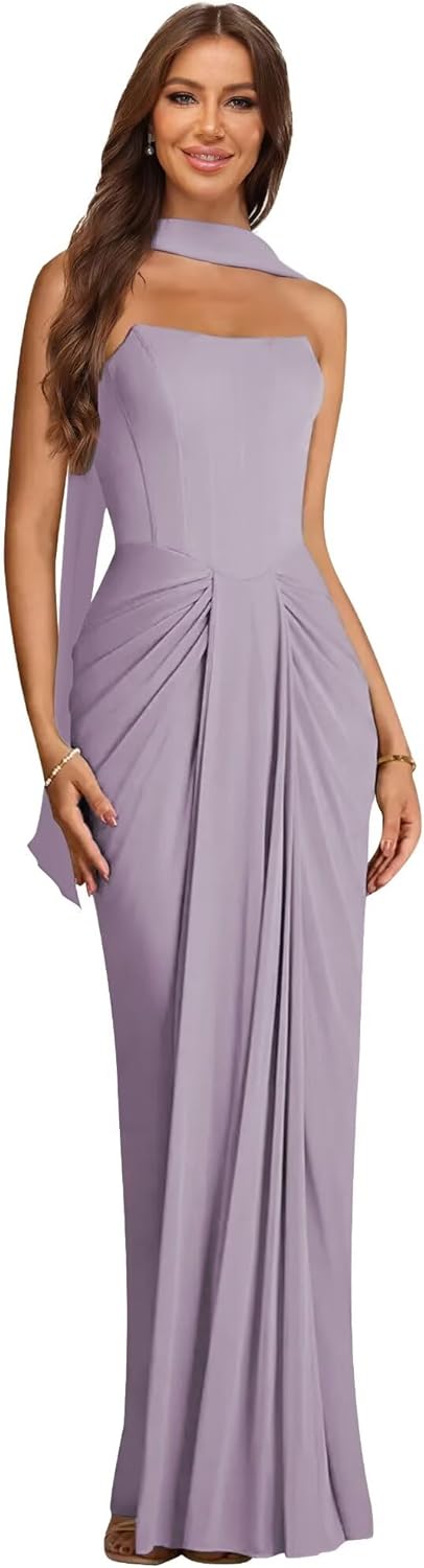 This chiffon mermaid bridesmaid dresses masterfully blends elegance with sophisticated detailing for a truly refined appearance. Silhouette: The mermaid gowns extends gracefully from the hips, hugging your curves to accentuate your figure while creating a long, lean line that elongates the silhouette. Fabric: Crafted from chiffon with a soft, muted luster, the fabric offers a gentle, natural radiance. Its delicate glow—reminiscent of morning dew on petals—enhances the gown's overall texture and refined appeal.