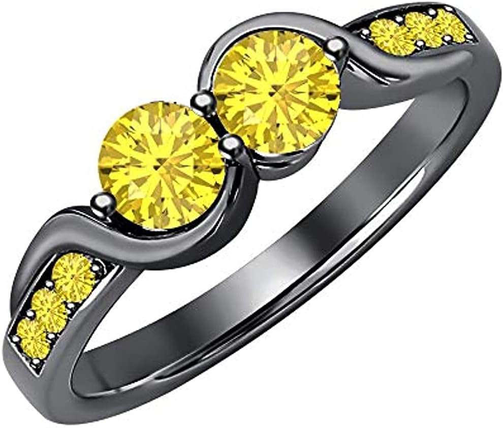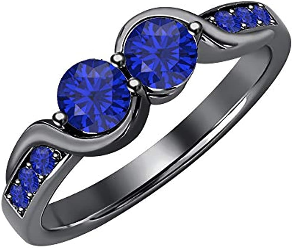 Reyansh Fashion Created Round Cut Gemstones 925 Sterling Silver 14K Black Gold Finish Diamond Two Stone Dazzling Engagement Ring for Women