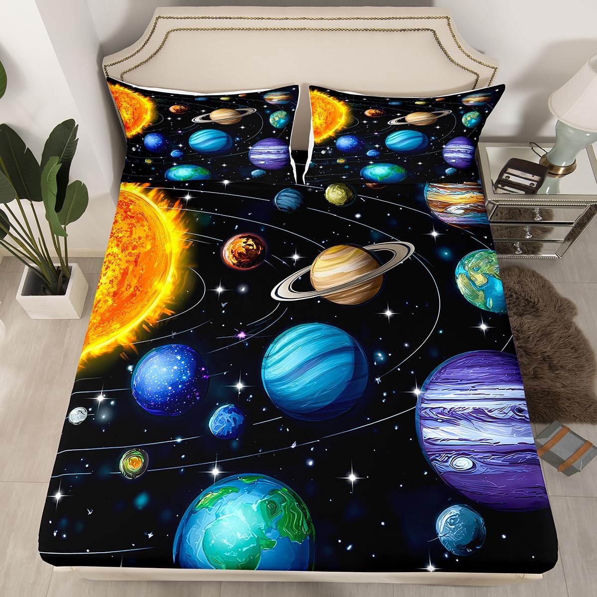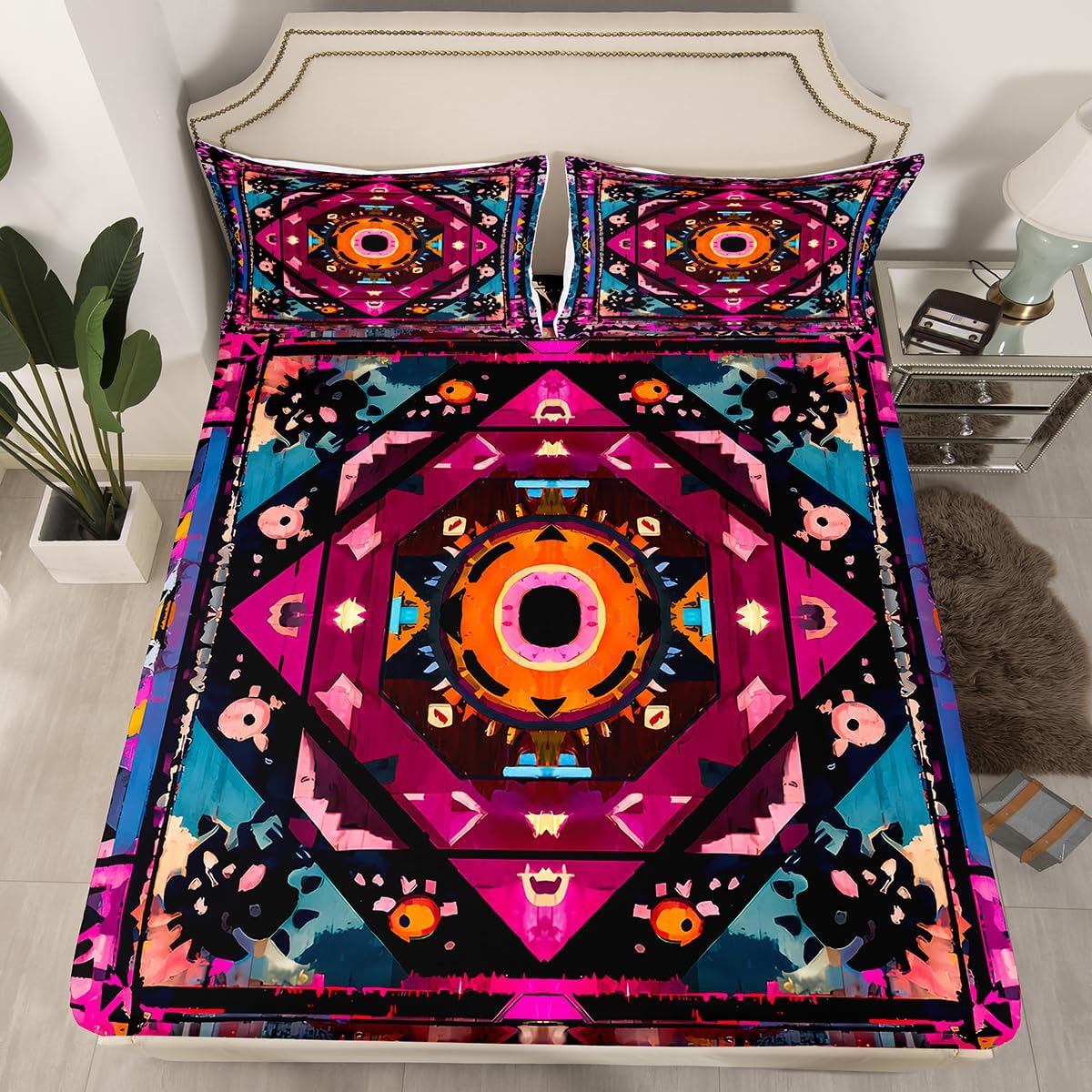 The Modern Fitted Sheet Set Pattern Bedding Set,Simply Decorating your Rooms You Want,Bringing You Fresh Feel for Year Round Use. Made From Polyester Microfiber Size Information: Twin Size: 2Pcs Fitted Sheet Set:1 Fitted Sheet 39"Wx75"Lx16"H(99x190x41cm), 1 Pillowcase 20"x30"(51X75cm). Full Size: 3Pcs Fitted Sheet Set:1 Fitted Sheet 54"Wx75"Lx16"H(137x191x41cm), 2 Pillowcase 20"x30"(51x75cm). Queen Size: 3Pcs Fitted Sheet Set:1 Fitted Sheet 60"Wx80"Lx16"H(152x203x41cm), 2 Pillowcase 20"x30"(51x75cm). : Personalize your Bedroom Vibrant prints and thoughtfully curated designs create a personalized bedroom retreat, supporting restful sleep in comfort With elasticity all around, this fitted sheet can firmly lock onto the mattress, making it suitable for various sleeping positions. Its all round package design ensures a smooth and flat surface. Coordinating envelope pillowcase that is easy to replace, saving time and effort, while maintaining the overall aesthetic appeal. : Washing Instructions Machine Wash Separately In Cold Water,Hang Dry,Do Not Bleach. : Occasion The Soft Fitted Sheet Bedding Sets Designed for Kids,Adult,Men,Women,Teens,Family and Friends.