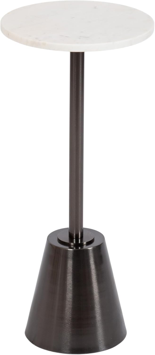 Introducing the Kate and Laurel Tira round drink table, a captivating blend of modern glam and natural elegance. The striking combination of the white marble tabletop and the brushed gold base creates a luxurious aesthetic that is sure to impress. The tabletop is crafted from authentic marble to create a natural yet luxurious aesthetic. This charming cocktail table is a beautiful accent for serving and placing drinks when friends are around due to its sturdy metal base. Its compact size and round design allow for easy placement and rearrangement to suit your needs. This exquisite circular end table boasts dimensions of 10 inches wide by 22 inches high, making it the perfect addition to your living room, bedroom, or any space in need of a stylish accent piece. Whether you place it next to your sofa, by your bedside, or in a cozy reading nook, this versatile drink table effortlessly enhances any space. The circular shape promotes a harmonious flow. It also offers ample surface area for holding drinks, snacks, or a good book within arm's reach.