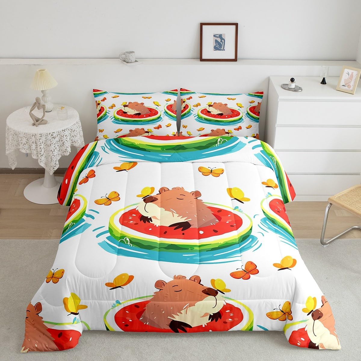 Package Include: Comforter and Pillowcase. Makeover your bedrooms every season with our Comforter sets. Perfect item for your room, girls boys youth room, master bedroom. Size Information: Twin size down comforter 68"W x 90"L and 1 pillow case 30"W x 20"L. 2pcs with 1 Bed Comforter and 1 Pillowcases in A Bag Full size down comforter 79"W x 90"L and 2 pillow cases 30"W x 20"L. 3pcs with 1 Bed Comforter and 2 Pillowcases in A Bag Queen size down comforter 90"W x 90"L and 2 pillow cases 30"W x 20"L. 3pcs with 1 Bed Comforter and 2 Pillowcases in A Bag King size down comforter 104"W x 90"L and 2 pillow cases 36"W x 20"L. 3pcs with 1 Bed Comforter and 2 Pillowcases in A Bag Useful and practical A luxurious product for homes, dorm rooms, hotels, guest rooms. Practical to use for being polyester, feels like cotton which is Super Soft and Breathable. No chemicals used, No dye substance harming the health of you or your family. Unique design: Vivid Colors won't fade thanks to new 3D digital printing methods. These unique designs match well with various color palettes of your rugs, curtains, headboard, furniture, and all other decor accessories. Personalized: As manufacturers of digital printed home textiles, we follow current trends and bring you the latest home fashion. More Decor: Search our store to get more christmas theme, new year theme, autumn fall theme, any holiday theme, modern abstract, farmhouse rustic theme, simple pattern, garden flowers etc. home decoration. Warm Tips: 1. Please allow 1-3cm error due to manual measurement. 2. Actual color may vary from the color on your screen due to monitor color restrictions.