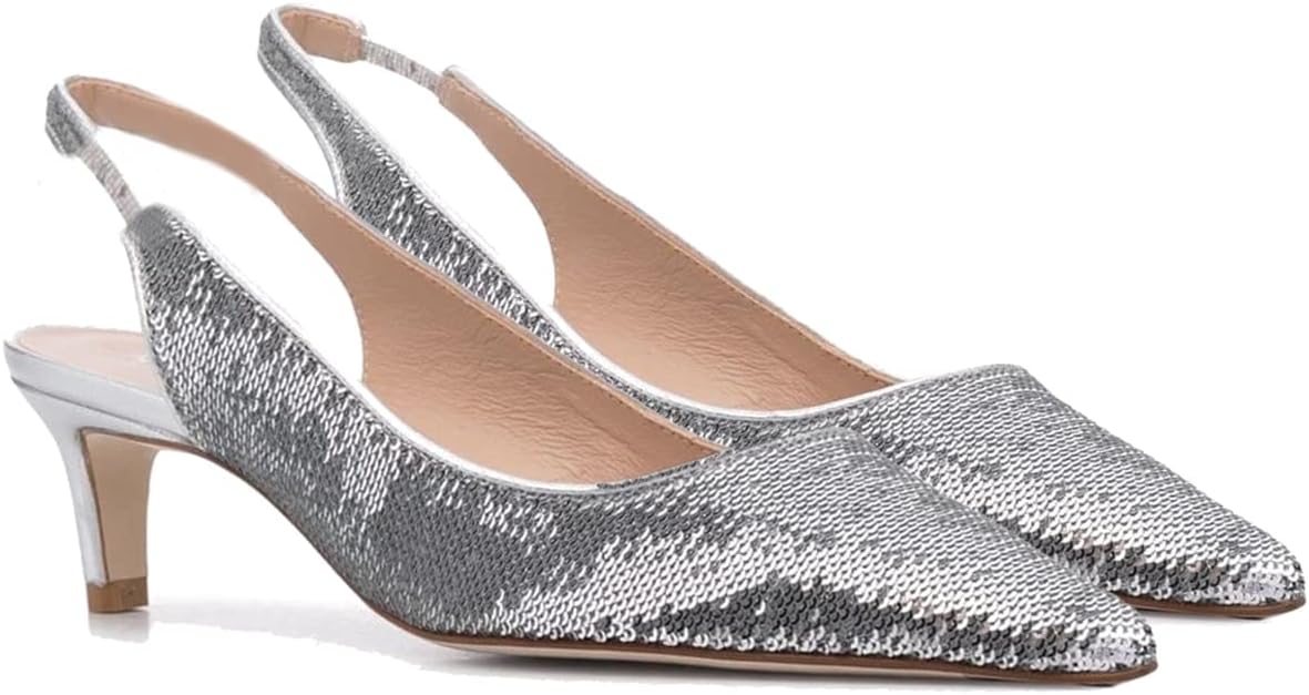 Welcome To Moommo Studio! 💕Shoes Features: 【Heel】Approx 2.5Inch; Approx 6cm. 【Material】Velvet Suede/ Glitter Material. 【Toe】Pointed Closed Toe Slingback Dress Shoes. 【Wear method】Elastic Ankle Strap Kitten Heel Dress Pumps. 【Occasion】Fashion style for Office, Wedding, Party, Date, Dancing, Club, Ball. 【Size】True to size. Choose your usual size. 💕Moommo Advantages 【One】Every 1 pair of shoes is handmade. 【Ten】At least 10 test models for selecting the most comfortable type. 【Fifteen】The development of each shoe last are more than 15 days. 【Twenty】Over 20 years of shoe-making experience in our own factory. 【Three hundred and sixty-five】Our shoes will give you 365 days of peace of mind.