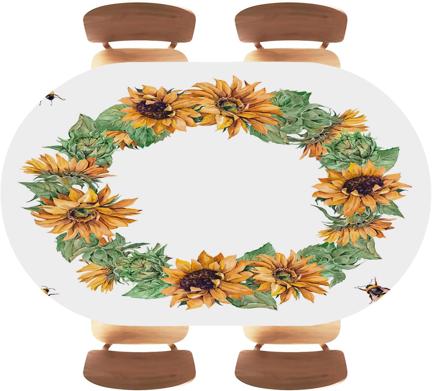 tablecloth oval elastic fit waterproof picnic sunflowers