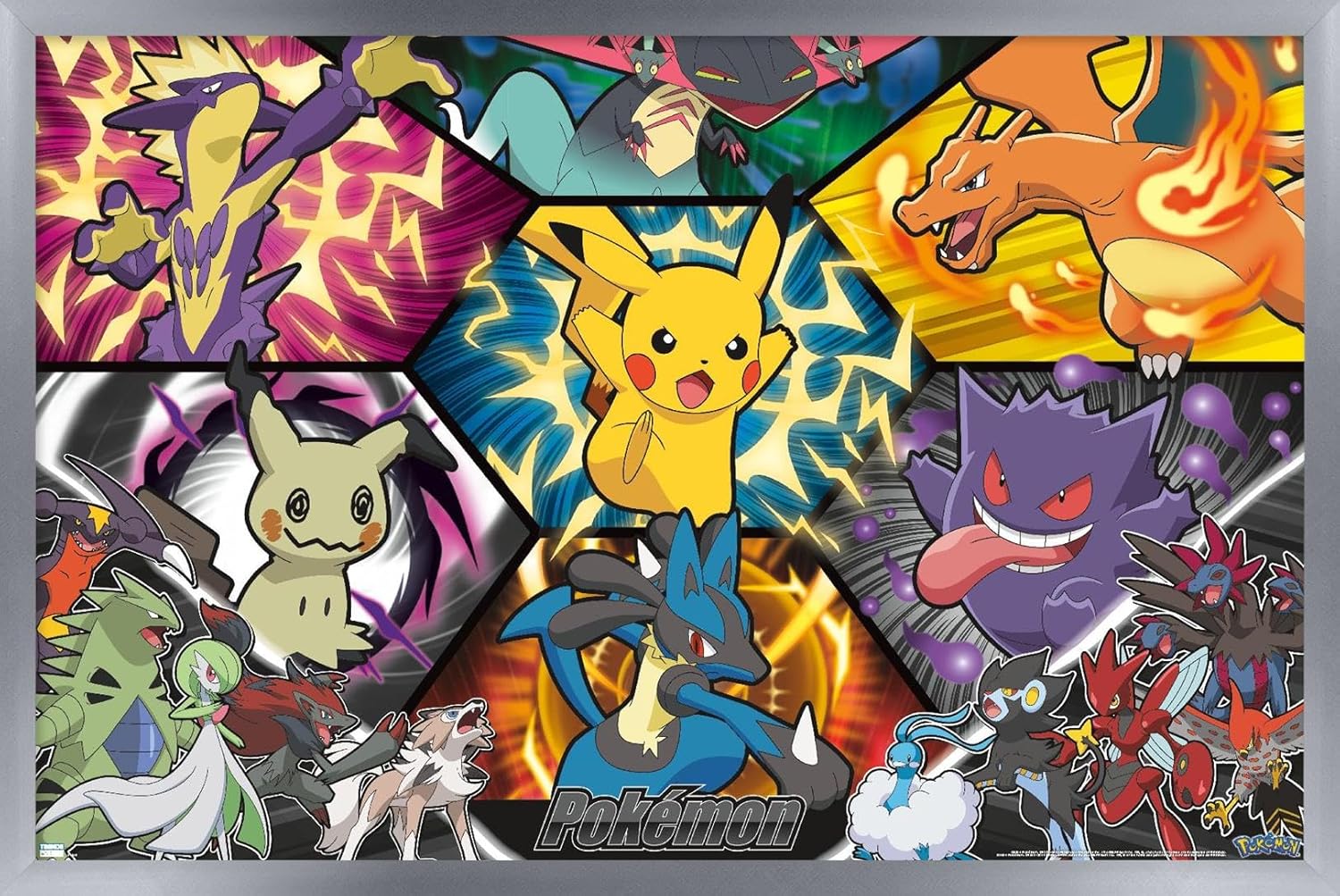 Trends International framed posters are everyone's favorite room decor! The clean, modern design and premium satin finish of this Pokémon: Battle Art - Group Wall Poster will make a bold wall decor statement in any room. Decorate the bedroom, bathroom, kid's room, living room, office, dorm, and more! Our framed posters are lightweight and easy to hang using the sawtooth hanger so you'll be able to enjoy it in no time. Every one of our framed posters are proudly Made in the USA. Add these decorations alongside the other accessories on your party supplies list too! Trends International's wall posters are the perfect way to dress up your parties. A framed poster makes a great gift as well! Whether it's for a birthday, Christmas, house warming or for your best friend, they'll love receiving a framed poster to show off their style.